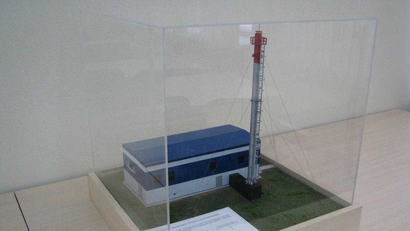 МАКЕТ СТАЛЬНАЯ ДЫМОВАЯ ТРУБА НА ФУНДАМЕНТЕ С РЯСТЯЖКАМИ