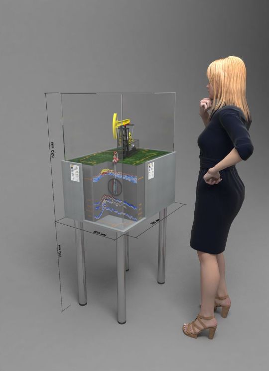 На 3D модели изображен макет, демонстрирующий работу шлангового глубинного насоса.