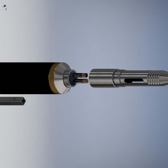Макет представляет из себя детальную копию оборудования, без допущения условностей. Предусмотрена технологическая особенность – кабельный наконечник откручивается, при помощи резьбового соединения. Для установки макета изготовлена специализированная стойка с подставкой.