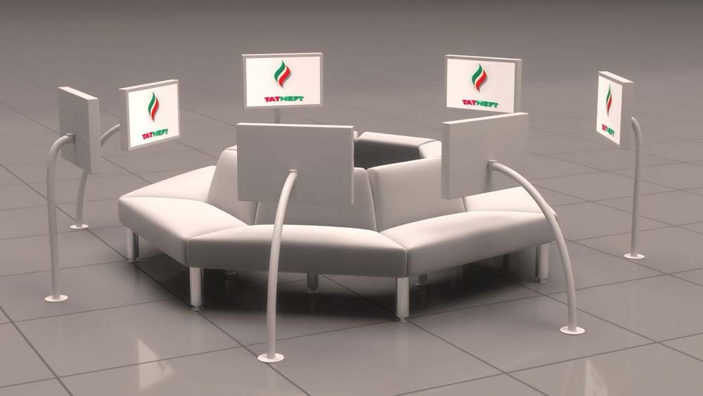 Представляем Вашему вниманию несколько визуализаций интерактивной зоны для передвижных выставок, музейных залов, переговорных и презентационных зон.