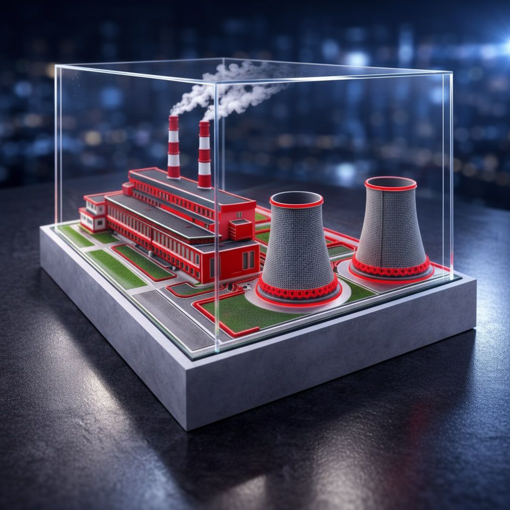 Данная 3D-модель представляет собой точную цифровую копию макета тепловой электрической станции. Моделирование выполнено на основе чертежей и технической документации, что гарантирует достоверность масштабов и взаимного расположения объектов.