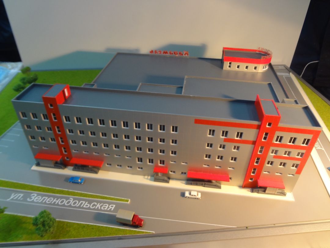 Масштабный макет изготовлен на основе чертежей, 3D визуализаций, предоставленных Заказчиком, предназначен в качестве экспоната в отделе продаж.