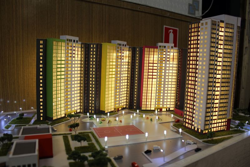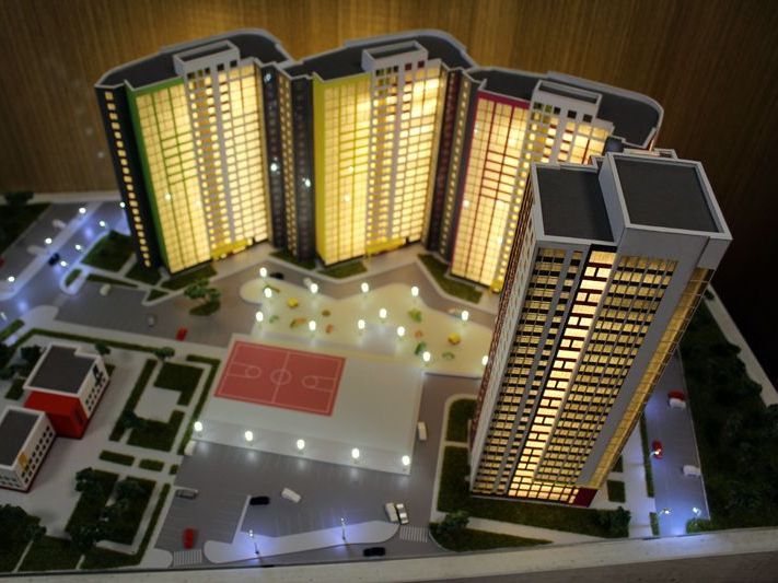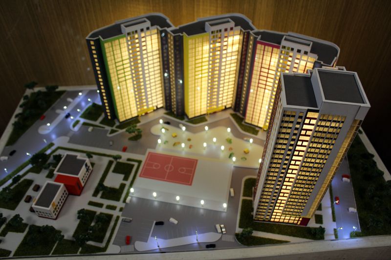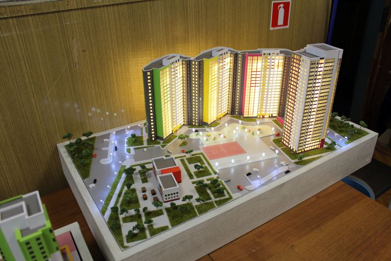 Масштабный макет изготовлен на основе чертежей, 3D визуализаций, предоставленных Заказчиком, предназначен в качестве экспоната для офиса продаж.