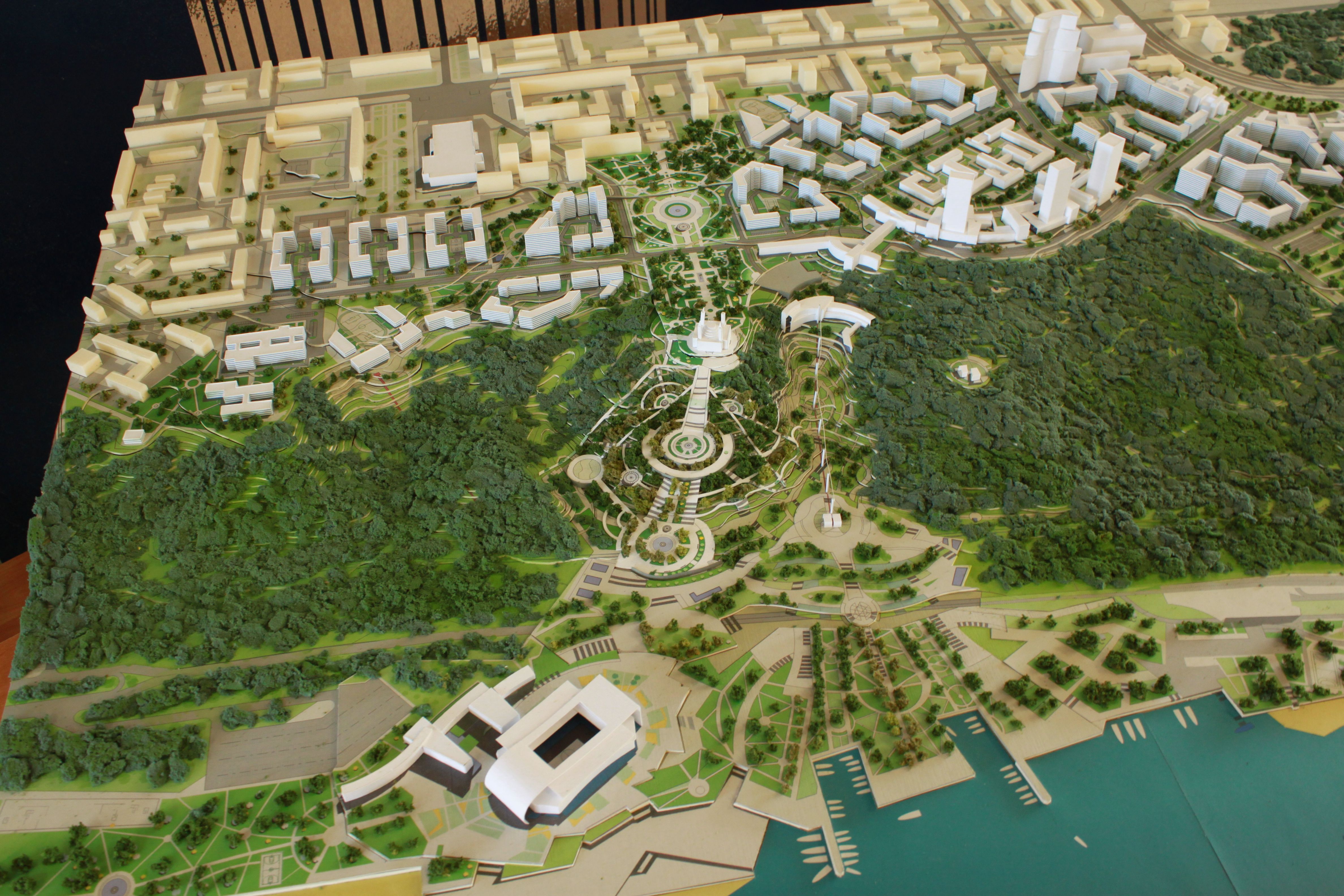 Масштабный макет изготовлен на основе чертежей, 3D визуализаций, предоставленных Заказчиком, предназначен в качестве экспоната в главархитектуре