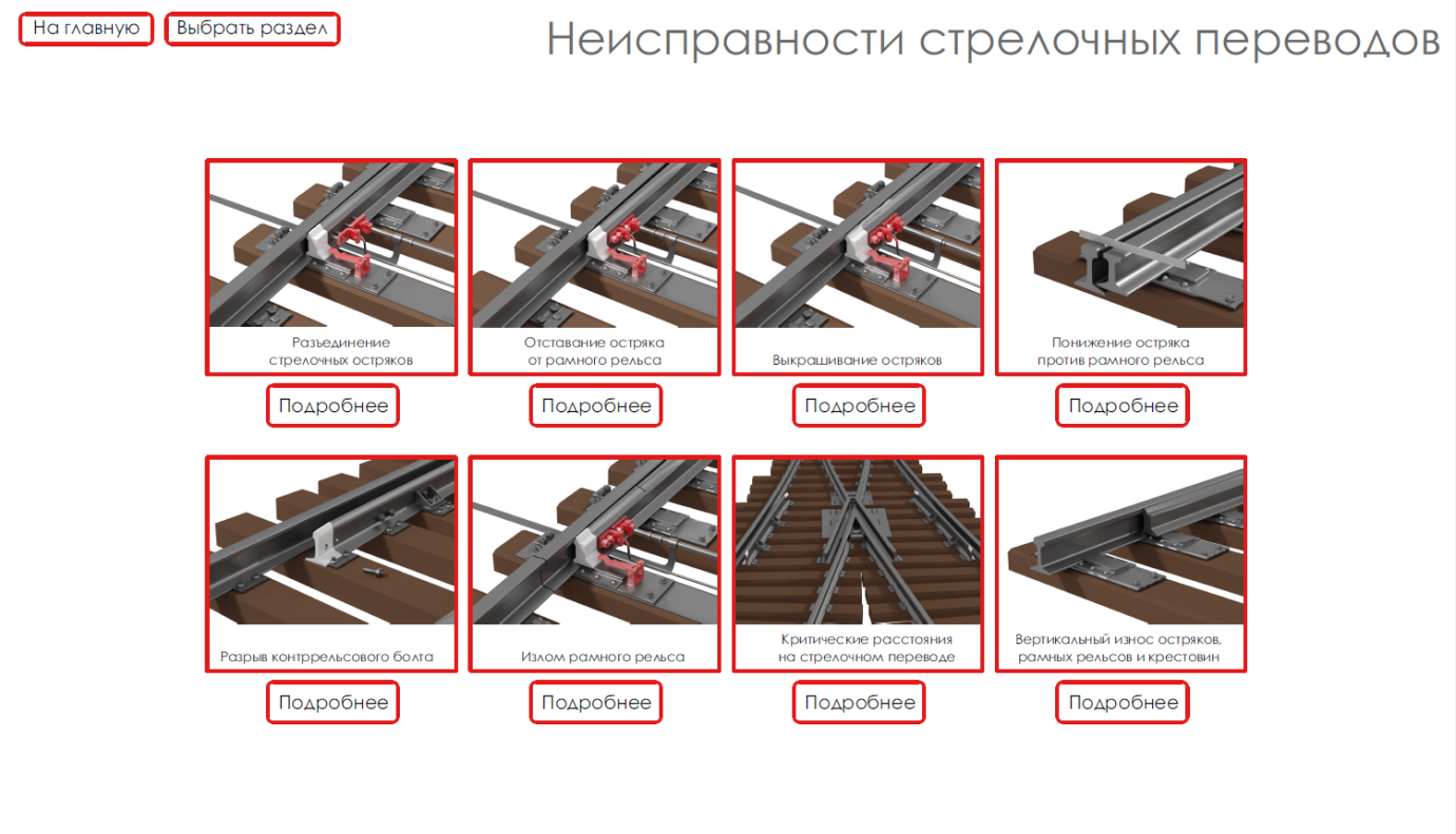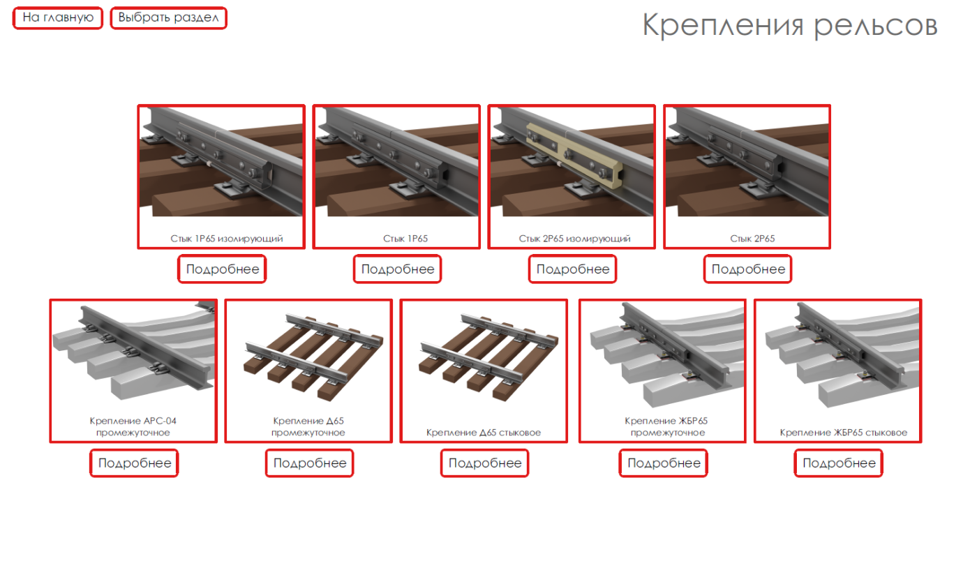 При выборе определённого компонента во всех разделах, рядом с его трехмерной моделью выводится краткое описание и перечень входящих в состав деталей.