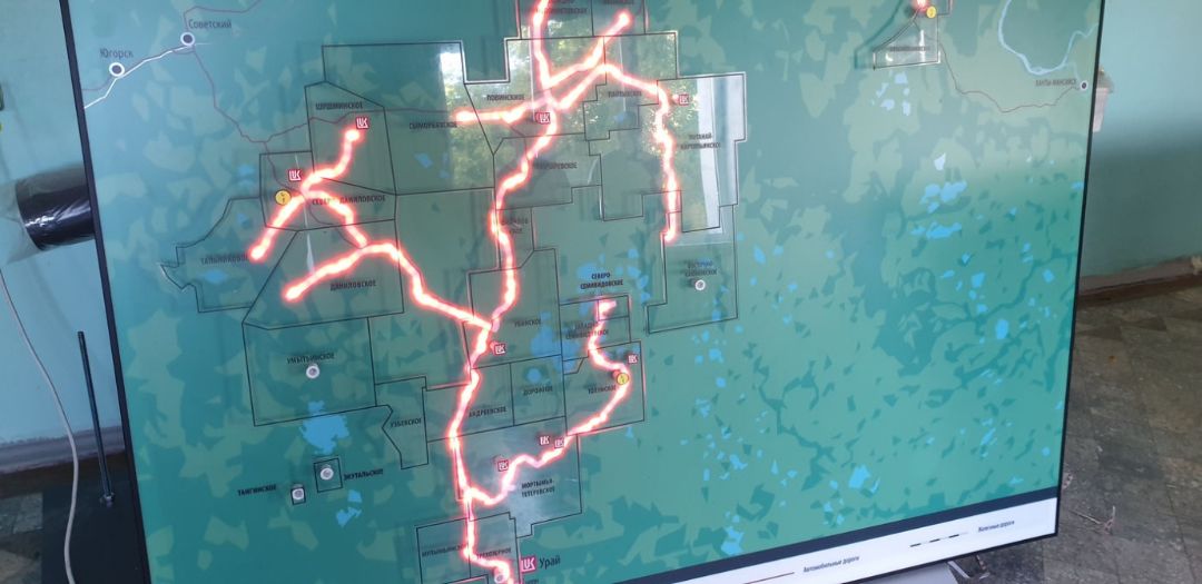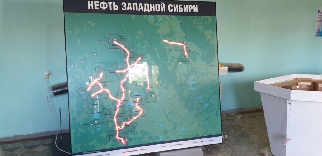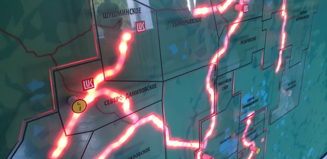 Движение нефти показано с помощью подсветки типа "бегущий огонь".
