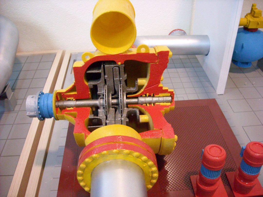 На корпусе нагнетателе выполняется разрез вертикально перпендикулярно до половины оси промвала нагнетателя, с возможностью ознакомления с устройством данного оборудования, рабочее колесо оставить без изменений.