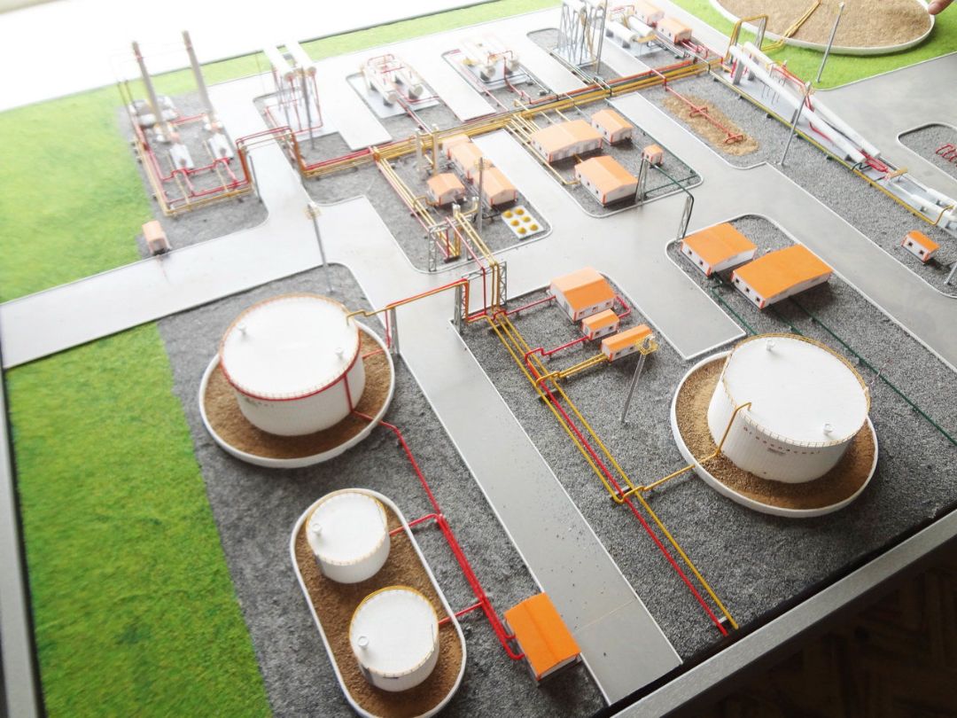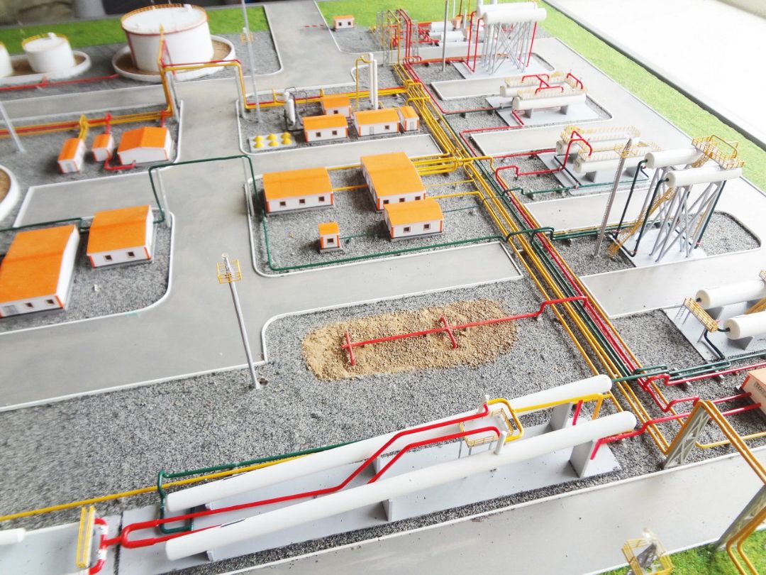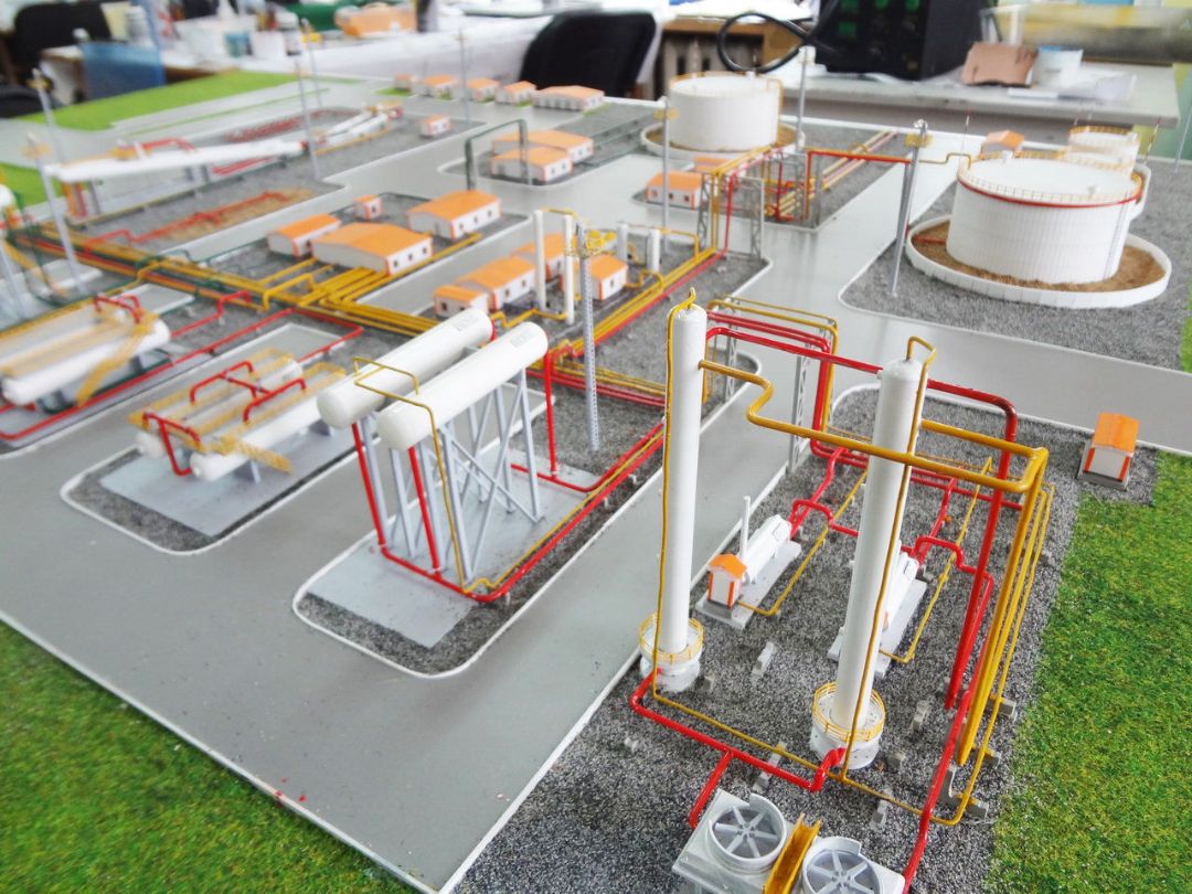 На макете показан комплекс технологического и вспомогательного оборудования для подготовки нефти к дальнейшей транспортировке и переработке.