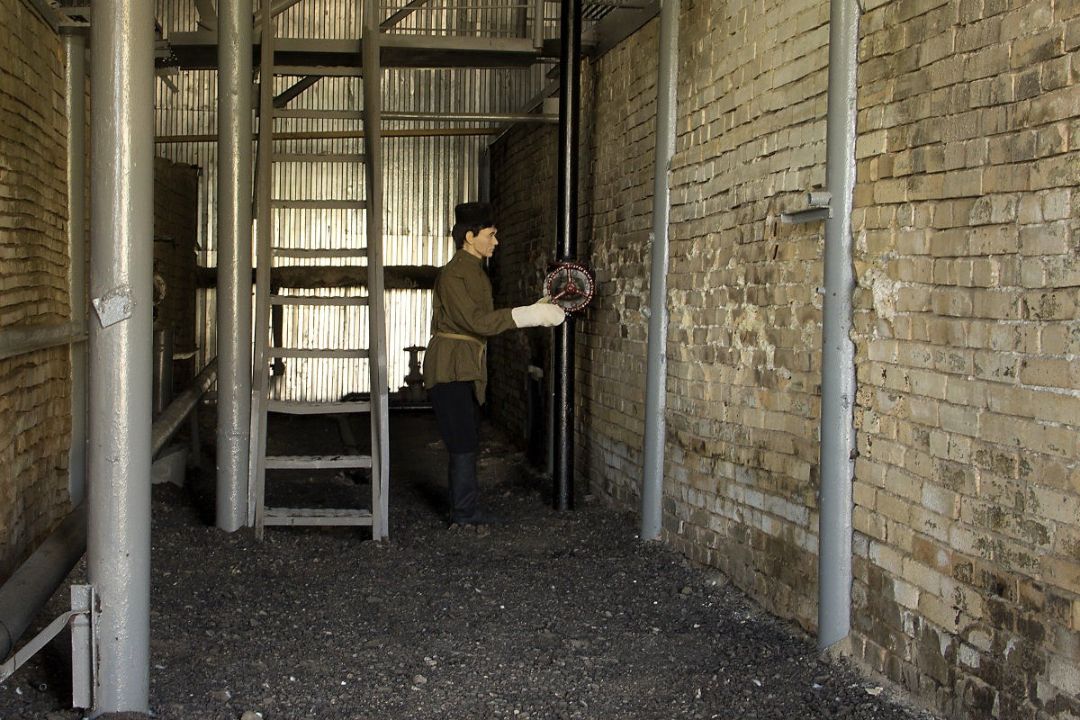 Восковой манекен рабочего смотрящего в топку 1940-1950 гг.