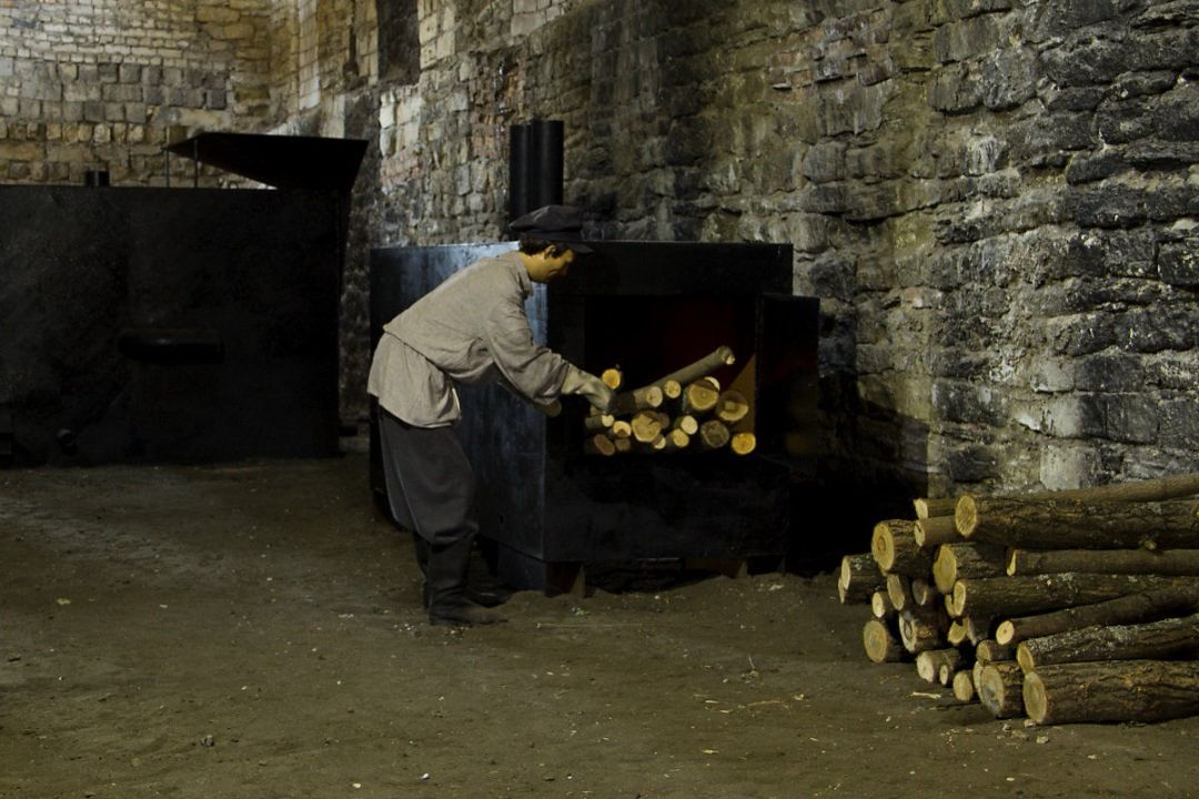 Восковой манекен рабочего топящего печь 1930-1940 гг.