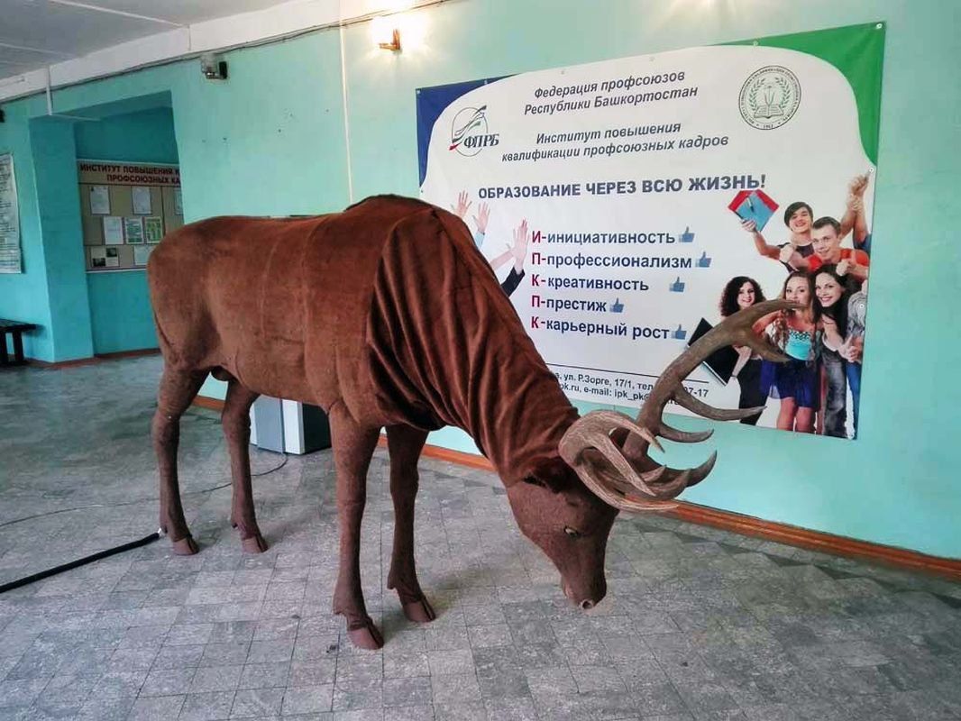 Эта необычная фигура выполнена в виде аниматрона, а это означает что олень может двигаться, реагируя на окружающую среду, и издавать звуки.