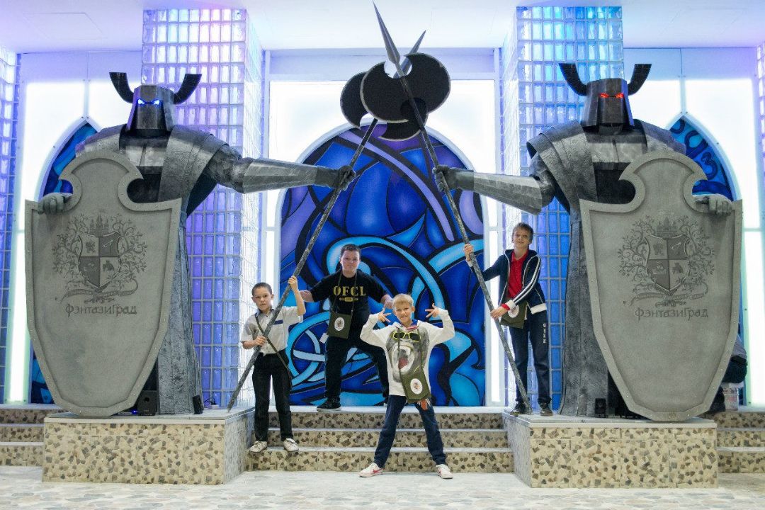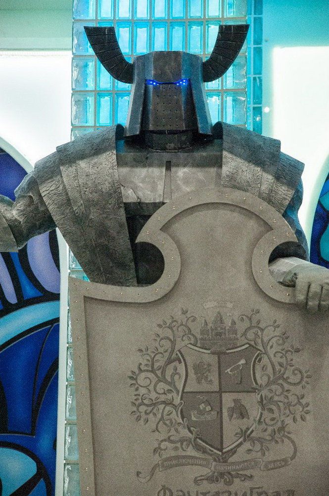 Изначальная позиция стражников – вертикальная стойка, алебарды уперты в землю и находятся параллельно туловищу аниматрона. Аниматроны смотрят перед собой. Цвет глаз - синий. Через некоторое время один из аниматронов опускает голову вниз, как бы засыпая. Звучит негромкий звук его похрапывания. Затем аниматрон резко вскидывает голову и выставляет руку с оружием вперед, как бы перекрывая дорогу посетителям. В это время у аниматронов загораются глаза красным цветом. Одновременно с аниматроном, который "проснулся", выставляет руку с оружием второй аниматрон (у него тоже загораются глаза). Затем они меняются ролями. Теперь тот, который "засыпал", стоит без изменений, а второй аниматрон опускает голову вниз и звучит легкое похрапывание, затем резко просыпается и они оба снова вскидывают руки, скрещивая оружие над головами посетителей.
