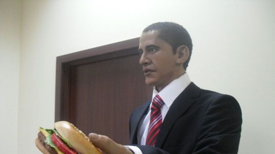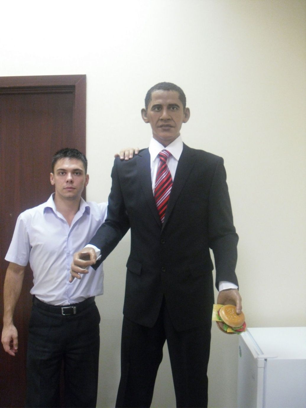 Манекен одет в классический деловой костюм, рубашку с галстуком. (Форма одежды – по желанию Заказчика). В руке манекен держит фирменный сандвич, другой показывает знак рукой «ОК».