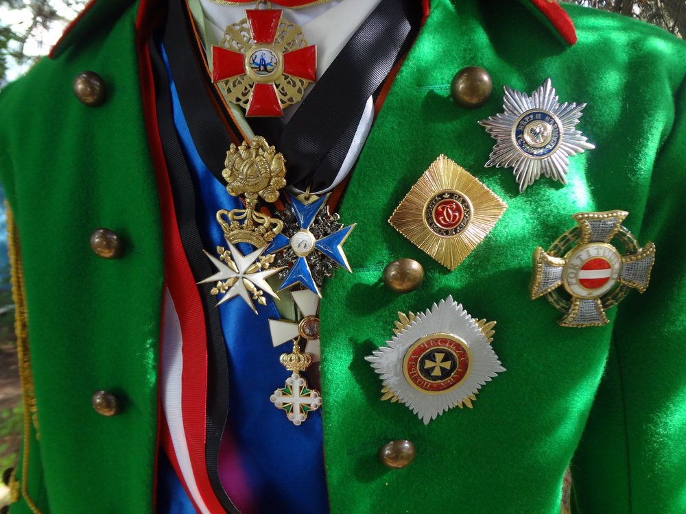 Награды: Четыре ордена с левой стороны мундира, пять орденов на шее.