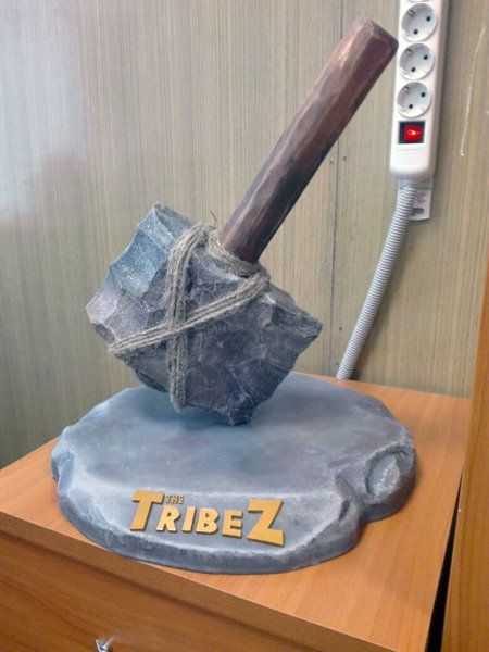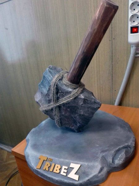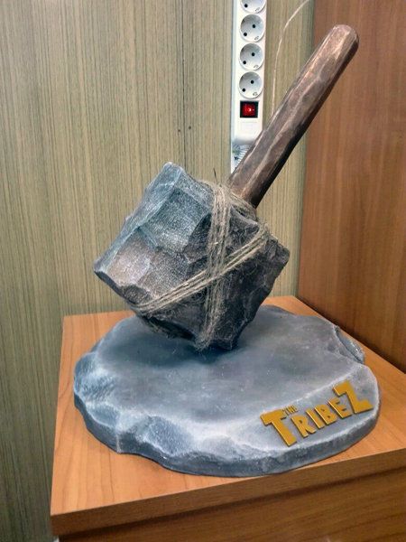 Все оформление выполнено с имитацией камня. Молот получился очень реалистичным, а подставку лаконично дополняют золотые буквы.