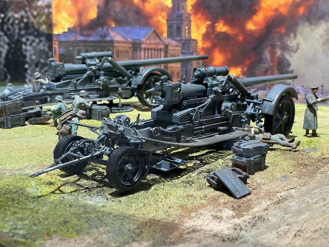 - Позиция с двумя дальнобойными немецкими орудиями. Одно орудие ведет огонь по городу;