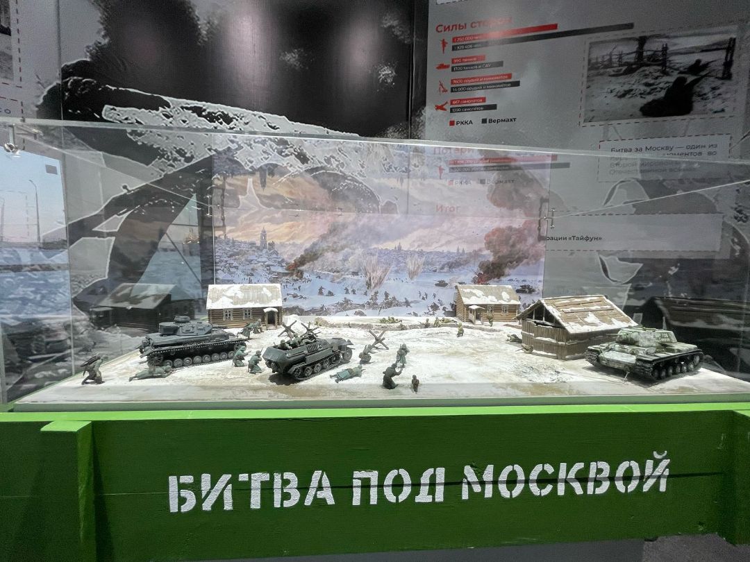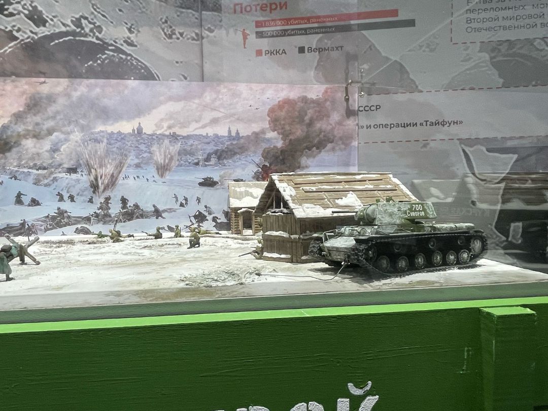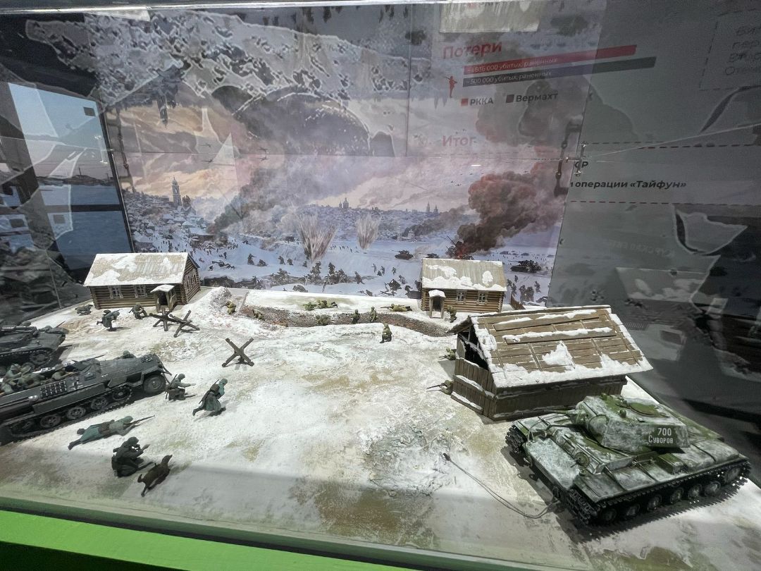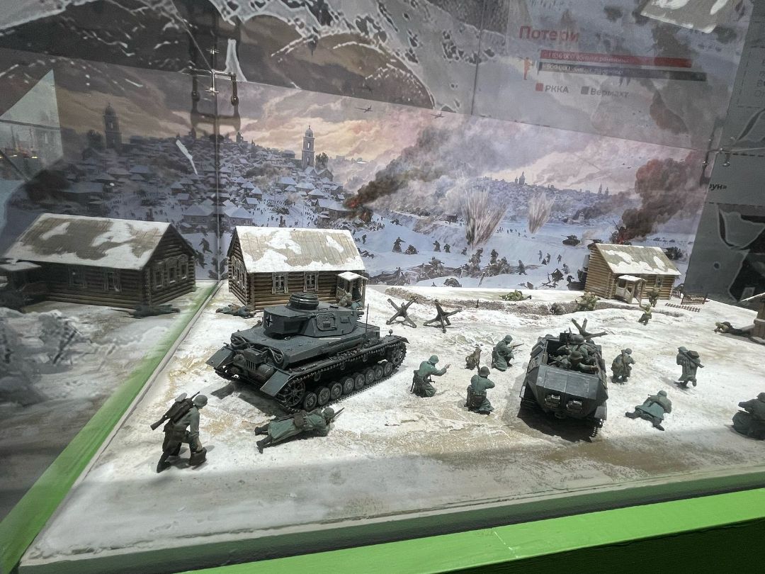 Музейный макет-диорама изображает бой на подступах к Москве в декабре 1941 г., эпизод отражения атаки немецко-фашистских войск.
