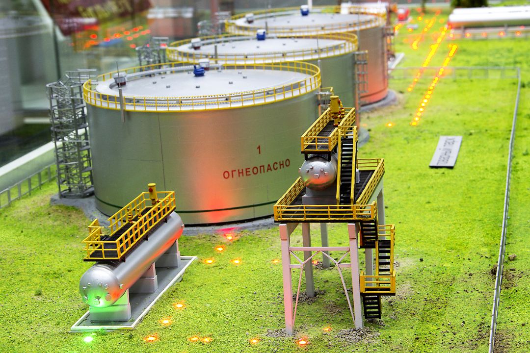 Макет представляет собой процесс добычи, подготовки нефти (по технологии ОАО «Татнефть»