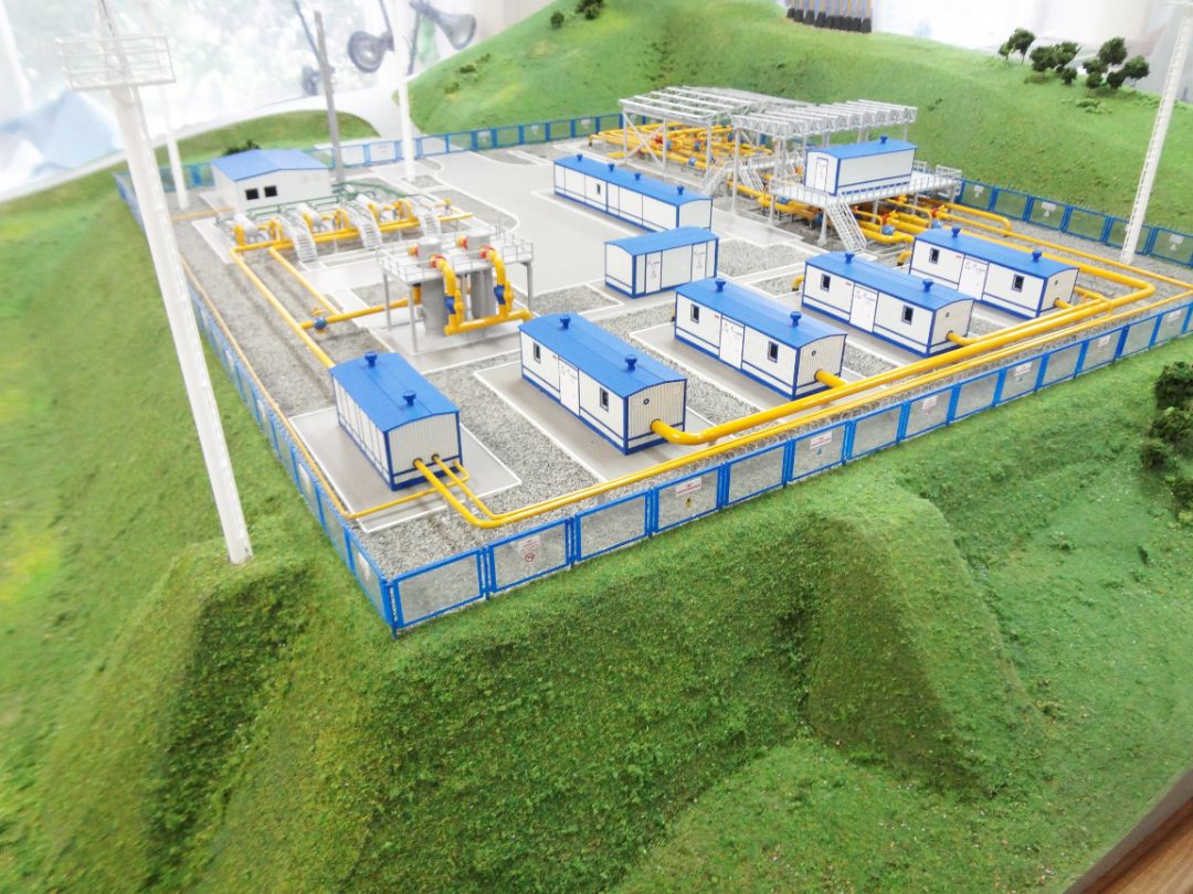 Макет представляет собой масштабное изображение автоматической газораспределительной станции. В масштабе воспроизведены технологические постройки, коммуникации.