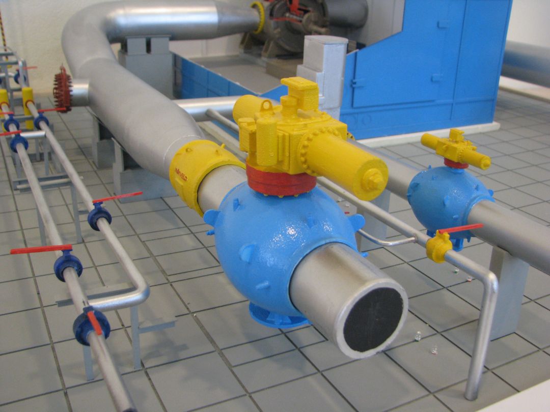 Макет изображает основные элементы обвязки нагнетателя.
