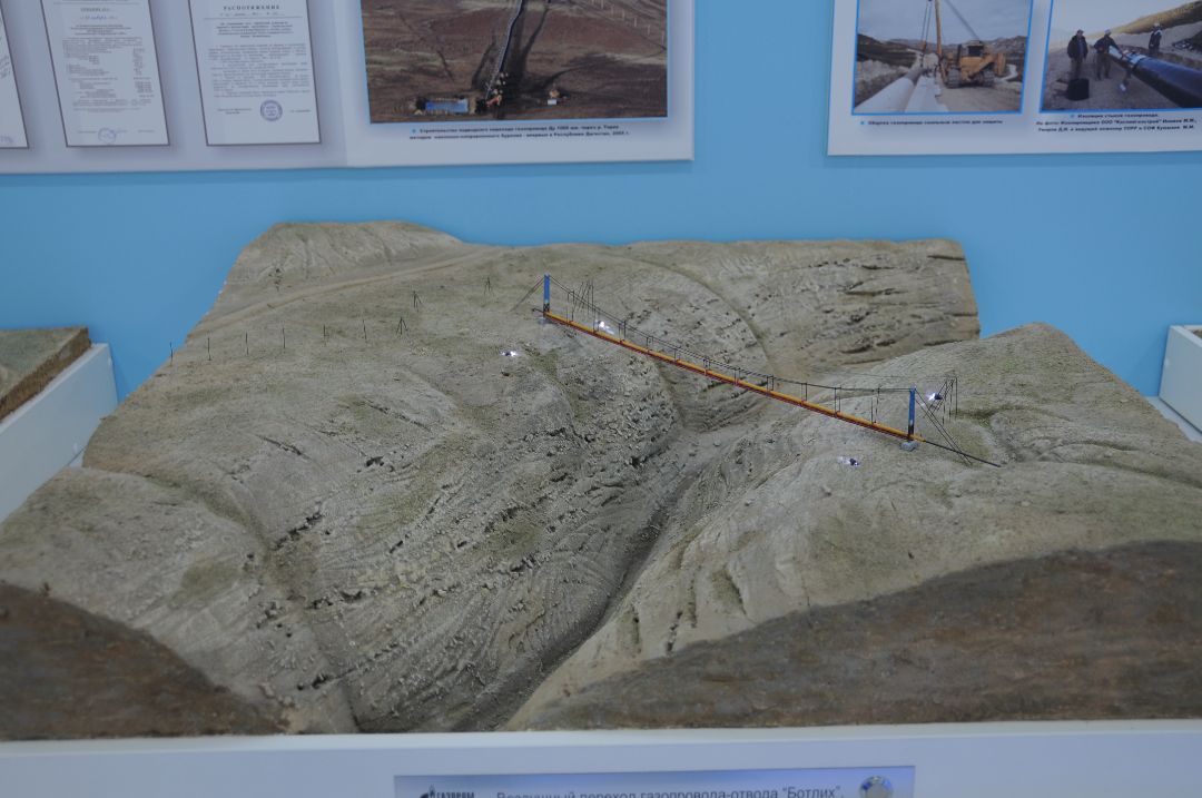 Макет представляет собой масштабное изображение вантового перехода в Ботлихском районе Дагестана