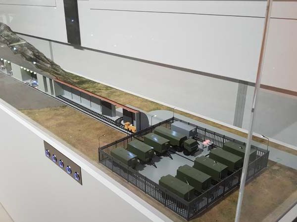 Макет представляет собой разрез штольни с оборудованием, предназначенным для испытаний.