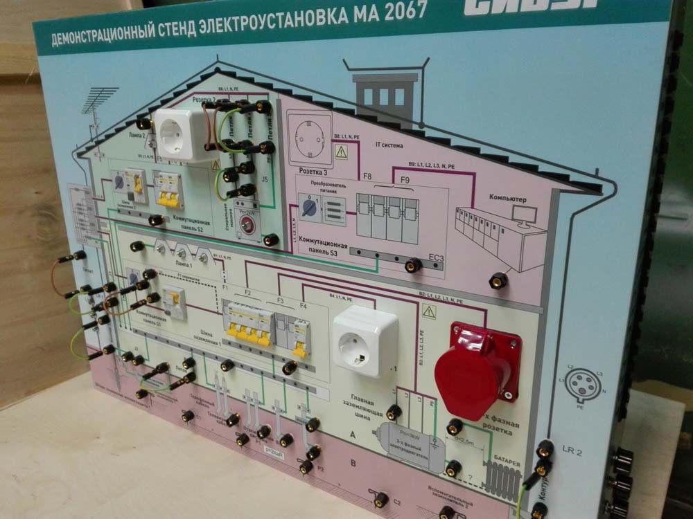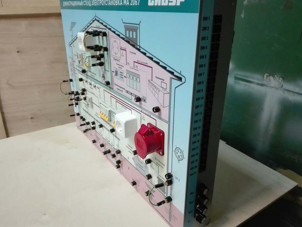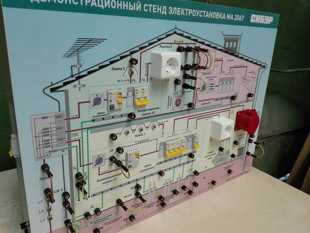 Демонстрационный стенд представляет собой индивидуальную модель электроустановки, содержащей все необходимые элементы.